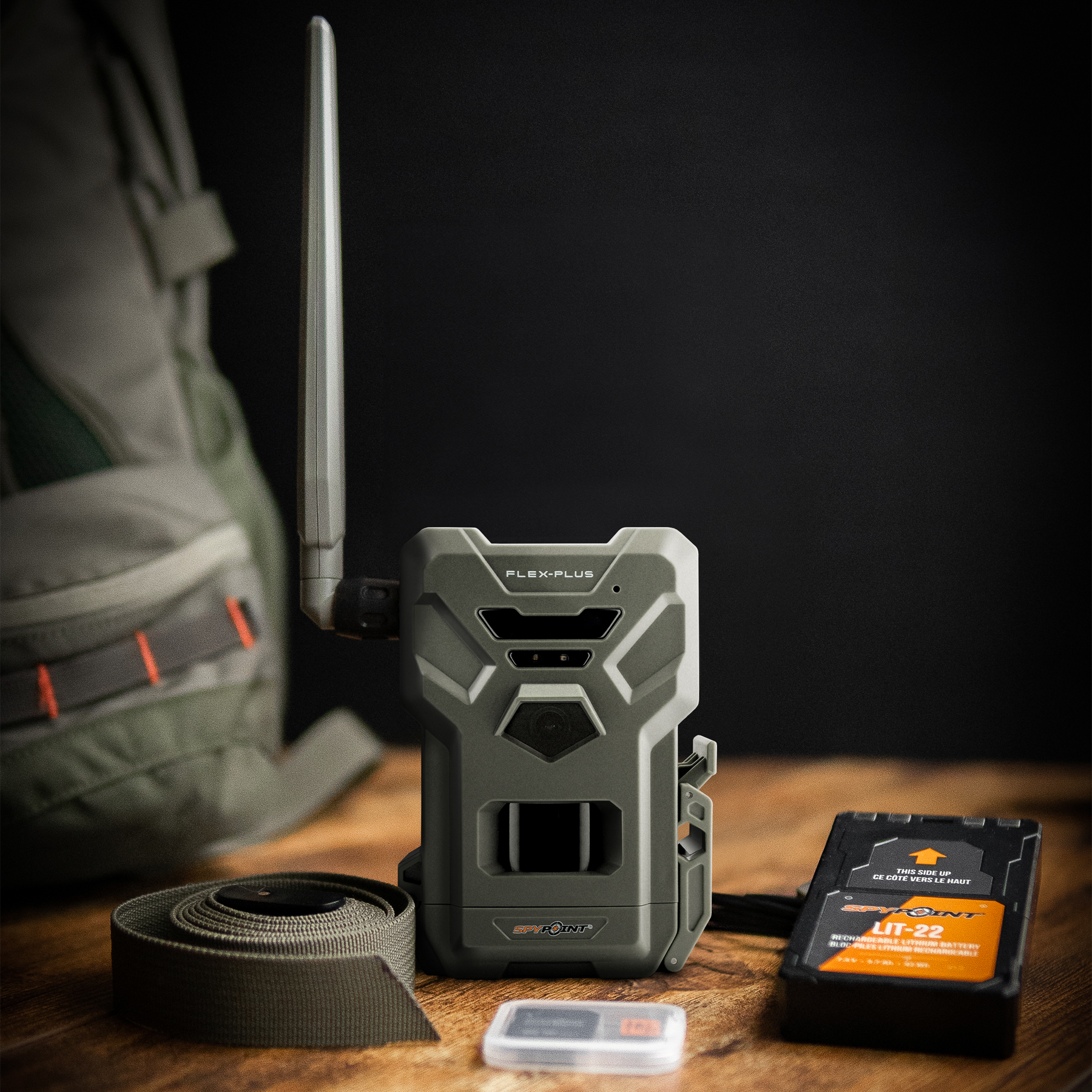 The SPYPOINT FLEX-PLUS takes a new approach to power supply. With the option of up to two LIT-22 rechargeable batteries or up to 16 AA batteries, the camera achieves even longer runtimes.